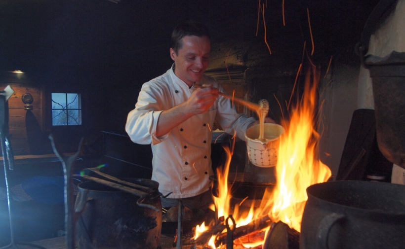Gelegentlich kochen wir für unsere Gäste auch noch den „Häfennigl“ am offenen Herdfeuer.